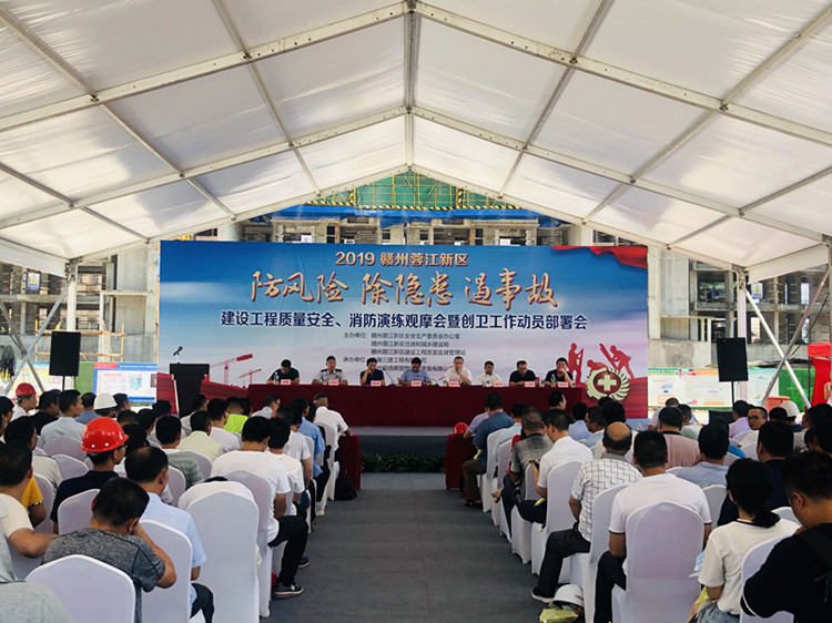 蓉江新區(qū)主題建設(shè)工程質(zhì)量安全、消防演練觀摩會(huì)暨創(chuàng)衛(wèi)工作動(dòng)員部署會(huì)在贛州毅德商貿(mào)物流園項(xiàng)目舉行