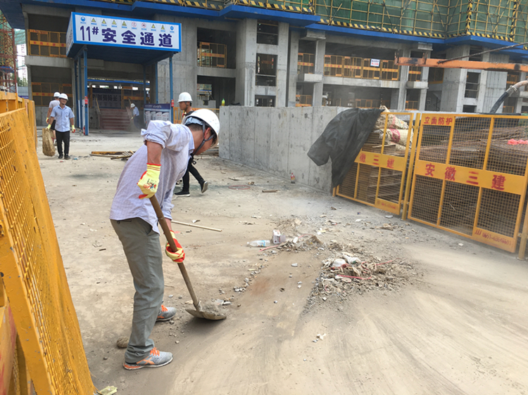 此次黨員義務(wù)勞動的主要任務(wù)是清掃項目部11棟與16棟樓之間等區(qū)域的的墻面、地面清掃,定型化材料整理。盡管太陽毒辣、天氣炎熱,但大家在項目黨支黨員的帶領(lǐng)下,全體管理人員熱情高漲,大家自動分工,相互協(xié)作,積極投身到熱火朝天的義務(wù)勞動行動中,勞動的身影在項目上成了一道亮麗的風(fēng)景線。