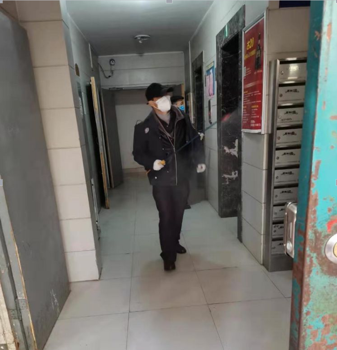 物業(yè)人員每天數(shù)次對(duì)各小區(qū)41臺(tái)電梯以及各個(gè)樓道等公共區(qū)域進(jìn)行清潔消殺