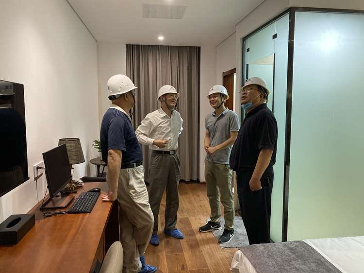 鄭成雨一行深入施工現(xiàn)場,詳細(xì)聽取了項目負(fù)責(zé)人關(guān)于樣板間制作以及下一步施工計劃等有關(guān)工作的匯報。鄭成雨在調(diào)研中對本項目整體設(shè)計布局、家具家電和設(shè)備材料選型以及樣板間制作進(jìn)度、質(zhì)量給予了充分肯定,尤其對本項目石膏板吊頂采取的防開裂措施以及室內(nèi)防水措施予以高度評價。
