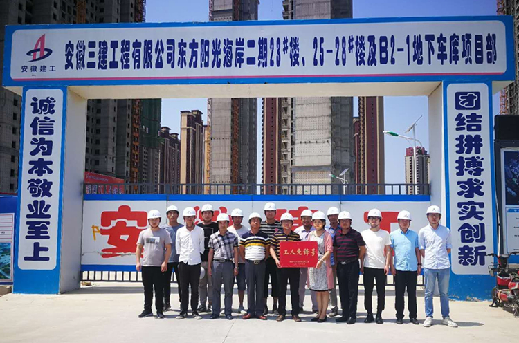 8月1日,安徽三建工程有限公司黨委委員、副總經(jīng)理陸勤斌,工會(huì)副主席馬榮琳來大連公司煙臺(tái)力高陽光海岸二期、三期項(xiàng)目部進(jìn)行公司“黨員先鋒號(hào)”、“工人先鋒號(hào)”創(chuàng)建工作考核驗(yàn)評(píng),項(xiàng)目順利通過驗(yàn)評(píng),現(xiàn)場(chǎng)被授予“黨員先鋒號(hào)”、“工人先鋒號(hào)”項(xiàng)目榮譽(yù)稱號(hào)。煙臺(tái)力高項(xiàng)目為公司2018年第一家“工人先鋒號(hào)”授牌項(xiàng)目,也標(biāo)志著本年度公司“工人先鋒號(hào)”驗(yàn)評(píng)授牌工作正式啟動(dòng)。