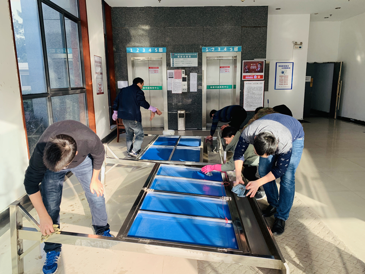 活動中,黨員同志臟活累活總是搶著干,不僅對辦公室內(nèi)部衛(wèi)生進行了全面清掃,還將門窗、墻面、電梯間、宣傳欄等公共區(qū)域等擦拭得一塵不染。雖然天氣寒冷,但在熱火朝天的勞動中,許多黨員額頭都流下了汗水。大家熱情似火、干勁十足,在勞動中傳遞微笑、增進感情、分享喜悅。
