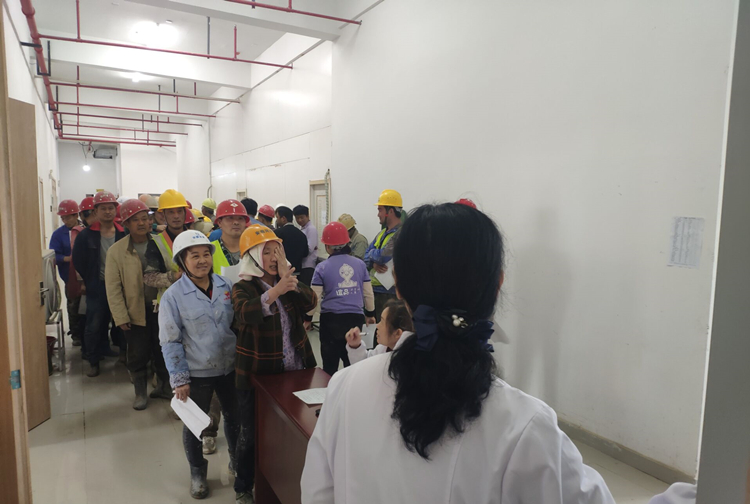 為確保體檢活動的順利完成,項目部結(jié)合實際提前與職工醫(yī)院進行溝通,醫(yī)生“上門體檢”。此次體檢涵蓋了視力、血壓、心電圖等多個項目,全面關(guān)注農(nóng)民工健康狀況,為項目安全生產(chǎn)保駕護航。活動中,工友們面帶微笑,自覺有序地排隊,不斷咨詢各類健康方面的問題,在場醫(yī)生均耐心解答并給出相關(guān)建議。項目部全程安排3名管理人員維持現(xiàn)場秩序,進行引導(dǎo),為農(nóng)民工兄弟筑造一道健康防護屏障。