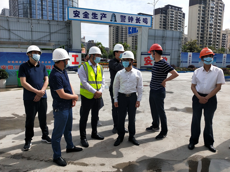 張澗一行深入施工現(xiàn)場(chǎng),詳細(xì)詢問(wèn)和查看了項(xiàng)目疫情常態(tài)化防控工作情況,實(shí)地察看了現(xiàn)場(chǎng)施工進(jìn)度、安全防護(hù)以及項(xiàng)目管理情況。