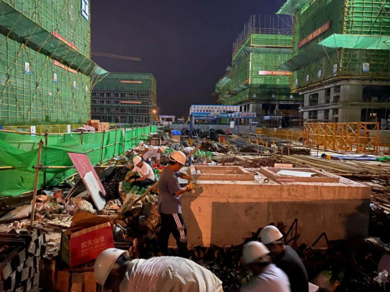 2021年7月22日晚間,臨廬欣榮農(nóng)民返鄉(xiāng)創(chuàng)新創(chuàng)業(yè)基地建設(shè)項(xiàng)目施工現(xiàn)場(chǎng)手電燈光和機(jī)械燈光交相輝映,現(xiàn)場(chǎng)一派繁忙的施工景象。在應(yīng)急電源及燈具設(shè)備的照明下,管理人員正在對(duì)現(xiàn)場(chǎng)各類鋼管扣件進(jìn)行分類、整理和打包,此次行動(dòng)持續(xù)到夜間11點(diǎn)。為東區(qū)多層廠房外架拆除、鋼管退場(chǎng)提前做好準(zhǔn)備,搶抓施工黃金時(shí)間,快速推進(jìn)項(xiàng)目建設(shè)。