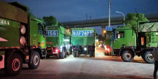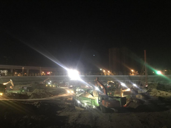 與此同時(shí),在三百公里外的合肥五里片區(qū)二期復(fù)建點(diǎn)(E、F地塊)項(xiàng)目,為了趕在7月30日工期節(jié)點(diǎn)前完成土方外運(yùn)任務(wù),項(xiàng)目組織投入使用18臺(tái)挖掘機(jī)、120輛運(yùn)輸渣土車,挑燈夜戰(zhàn)力保進(jìn)度,確保每天完成土方外運(yùn)10000方以上。晚間11時(shí),施工照明燈照亮了整個(gè)施工現(xiàn)場(chǎng),燈光與夜空中的星光遙相輝映,挖掘機(jī)、渣土運(yùn)輸車等施工機(jī)械在工地來回穿梭,轟鳴聲不斷……夜深了,但項(xiàng)目管理人員像戰(zhàn)士一樣,不怕苦、不怕累,始終堅(jiān)持在一線,衣服被汗水浸濕,也要保證按期完成任務(wù)。正是因?yàn)橛辛诉@樣一群默默付出的人,施工現(xiàn)場(chǎng)才能持續(xù)保持著高效運(yùn)作。到目前為止,項(xiàng)目累計(jì)完成出土量32.5萬方,占土方總量93%。