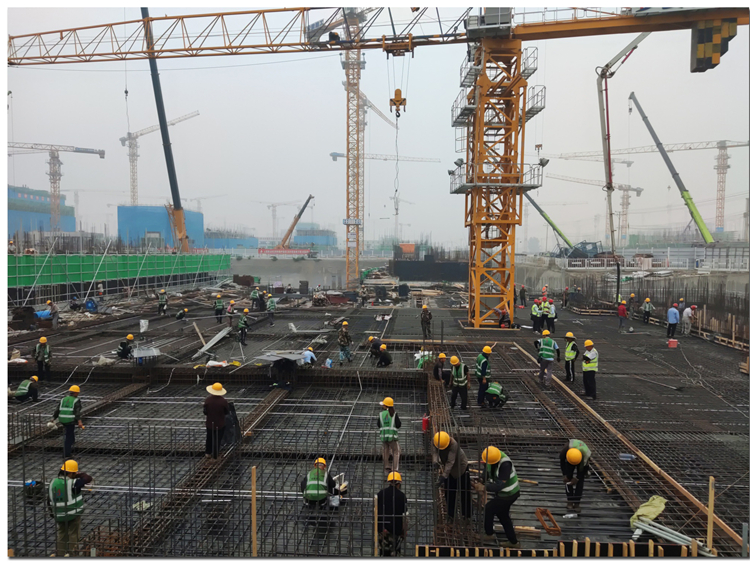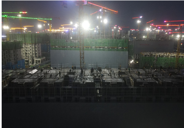 正值大暑,烈日炎炎,但項目管理人員和工人們戰(zhàn)高溫、斗酷暑,打敗一切不利于因素,倒排工期,加班加點,采取“5+2”、“白+黑”24小時倒班作業(yè)的搶工模式,有力確保不間斷作業(yè)。各工區(qū)開足馬力趕工期、搶進度,大家鼓足干勁、輪班作業(yè)、晝夜兼程,所有人都在有條不紊地忙碌著,放線、看儀器、指揮塔吊、綁扎鋼筋、支撐模板、澆筑混凝土,全力加快施工生產(chǎn)進程。全體管理人員帶領(lǐng)現(xiàn)場工人頭頂烈日奮戰(zhàn)在施工一線,每一寸裸露在太陽下的皮膚都被曬的通紅,汗水從每一個毛孔滲透出來,模糊了雙眼,打濕了衣襟,一顆顆晶瑩飽滿的汗水順著衣角滴到滾燙的地面;但這都擋不住建設(shè)者們的熱情,阻不了勞動者們的腳步,他們白天與驕陽為伍,夜晚與星辰相伴,為確保實現(xiàn)八月底主體結(jié)構(gòu)全面封頂?shù)哪繕?biāo),吹響“沖鋒集結(jié)號”,大干快上。