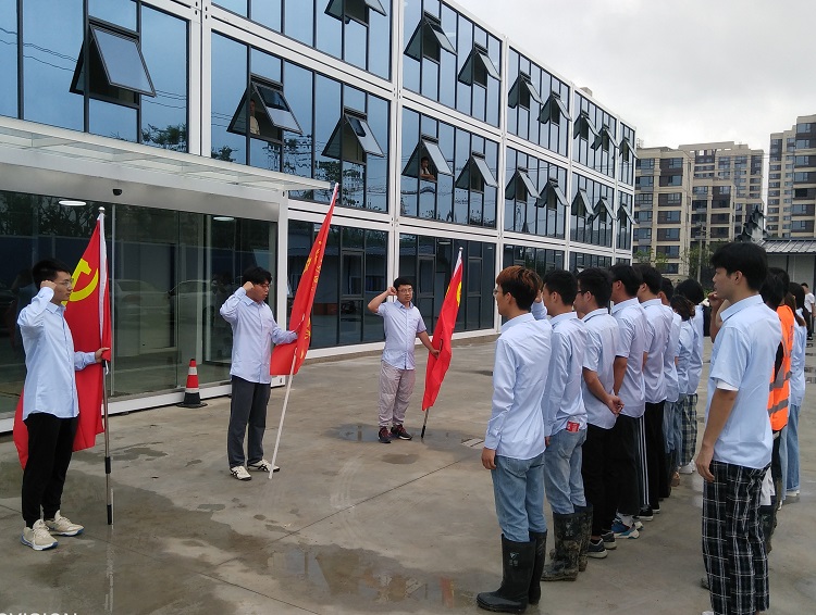 為團(tuán)結(jié)帶領(lǐng)廣大團(tuán)員青年在項(xiàng)目建設(shè)中發(fā)揮生力軍和突擊隊(duì)的作用,推動(dòng)項(xiàng)目建設(shè)目標(biāo)順利完成,合肥一中東校區(qū)項(xiàng)目根據(jù)工程建設(shè)需要和建隊(duì)標(biāo)準(zhǔn)成立了“青年突擊隊(duì)”,并于7月26日舉行授旗儀式。突擊隊(duì)由25人組成,技術(shù)負(fù)責(zé)張偉擔(dān)任隊(duì)長,平均年齡僅24歲。