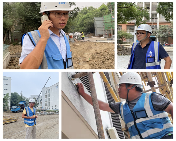 項目建設(shè)期間涌現(xiàn)出了一大批堅定信念、盡職盡責(zé)、敬業(yè)奉獻(xiàn)的生動典型。項目經(jīng)理李國,臨危受命,沉著應(yīng)對,堅定信念,帶領(lǐng)團(tuán)隊克服工期緊、困難多、要求高等重重險阻壓力,把控全局的同時著眼細(xì)節(jié),全力推進(jìn)項目搶工建設(shè),在一中項目搶工建設(shè)過程中發(fā)揮主導(dǎo)核心作用。銀城旭輝樾溪臺項目經(jīng)理張健,兼顧自身項目收尾工作的同時,樹立大局意識,迅速轉(zhuǎn)變身份,擔(dān)任一中項目實驗樓、行政樓及體育館改造工程區(qū)域負(fù)責(zé)。黃山恒大美麗之冠項目經(jīng)理年福永,服從調(diào)度聽指揮,緊盯恒大項目決算對賬工作的同時,在一中項目擔(dān)任生活區(qū)及教學(xué)區(qū)室外道排、綠化及廣場、雨污水改造工程區(qū)域負(fù)責(zé),喊得嗓子都嘶啞了,揣著藥就著礦泉水繼續(xù)堅守崗位。二公司安全科長張立榮,長期蹲點一中項目,干起了項目安全員,“安全為天,項目干的再好,出了安全事故,一切白搭,一中正值搶工快上,現(xiàn)場節(jié)奏快,也正是班組工人最麻痹、最困乏、最暴躁、最容易違規(guī)操作的時候,一不留意就會存在安全隱患”。他每天馬不停蹄地穿梭在現(xiàn)場進(jìn)行安全巡檢,每個犄角旮旯都不發(fā)過,為項目搶工建設(shè)把好了安全第一關(guān)。和他們一樣盡職盡責(zé)保障項目建設(shè)的還有二公司技術(shù)質(zhì)量科長齊蔚、項目施工員唐龍泉、任安暉…… ,在項目上,晚上加班到11點多、每天步走3.5萬步、日夜奮戰(zhàn)、曬傷依舊堅守崗位、放棄與家人團(tuán)聚、犧牲休息時間都是常態(tài)。