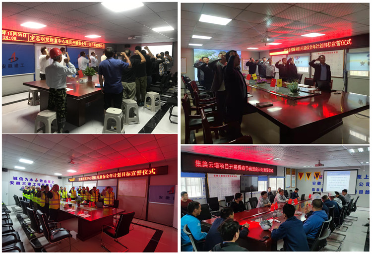 “為完成項(xiàng)目春節(jié)前進(jìn)度管理目標(biāo),我們?nèi)f眾一心,克服困難,鼓足干勁,勇往直前,堅(jiān)決完成施工任務(wù),咬定工期不放松,掀起大干熱潮,爭(zhēng)當(dāng)施工先鋒,嚴(yán)格落實(shí)進(jìn)度計(jì)劃安排,確保各項(xiàng)節(jié)點(diǎn)目標(biāo)順利實(shí)現(xiàn)。宣誓人···”,10月8日晚,來(lái)自安徽三建十一公司6個(gè)在建項(xiàng)目、160余名項(xiàng)目管理人員共同宣誓吶喊,充分展示了廣大干部職工為確保按期完成工期目標(biāo)、建設(shè)精品工程的決心和信心。