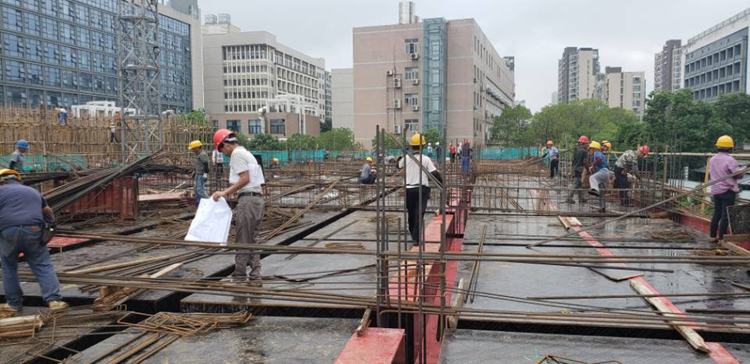 由于25、26兩天大雨影響以及本層為懸挑層導(dǎo)致施工進(jìn)度滯后,2021年8月29日至30日,蕪湖中醫(yī)院項(xiàng)目鋼筋工工人加班加點(diǎn)頂著炎炎烈日大面積的鋪設(shè)住院樓梁板鋼筋,確保了8月31日完成三層結(jié)構(gòu)混凝土澆筑工作。9月17日,為了硬化現(xiàn)場的一塊場地為施工材料的周轉(zhuǎn)和堆場提供空間,現(xiàn)場管理人員與工人一直工作至凌晨5點(diǎn),圓滿完成任務(wù),大大減少了因材料堆場周轉(zhuǎn)等問題導(dǎo)致的現(xiàn)場工作開展緩慢的問題,為現(xiàn)場搶工期提供了有力的幫助。標(biāo)志著現(xiàn)場生產(chǎn)進(jìn)度將再上一個(gè)臺階。9月18日,項(xiàng)目部一天時(shí)間里完成了考試樓、住院樓的一層外圍擋土墻砌筑工作,鋼筋與木工緊隨其后完成鋼筋綁扎與支模工作,第二天便完成格構(gòu)柱與壓頂?shù)臐仓ぷ?,為周邊回填土,場地硬化贏得足夠的時(shí)間。9月21日中秋佳節(jié),項(xiàng)目部全體員工堅(jiān)守項(xiàng)目上奮力搶工期節(jié)點(diǎn)。