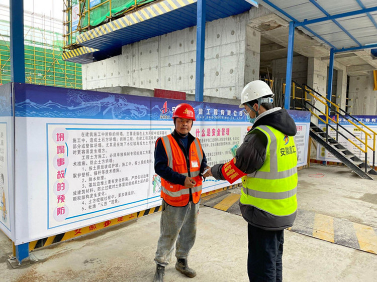 “黨員亮身份、防疫在行動”。安徽三建五里片區(qū)項目在本工程各區(qū)域門口設有黨員監(jiān)督防疫員的同時,黨員同志們更是帶上口罩,上樓進行防疫檢查,對放松警惕摘除口罩的一些工友,監(jiān)督并提醒其佩戴好口罩。