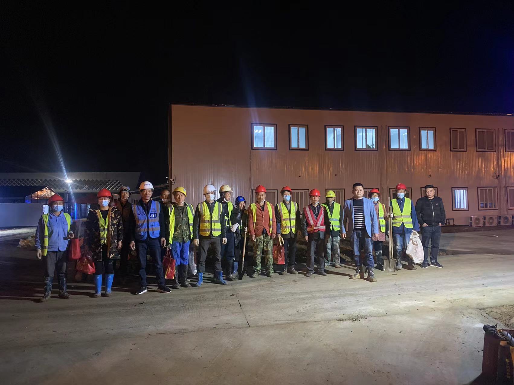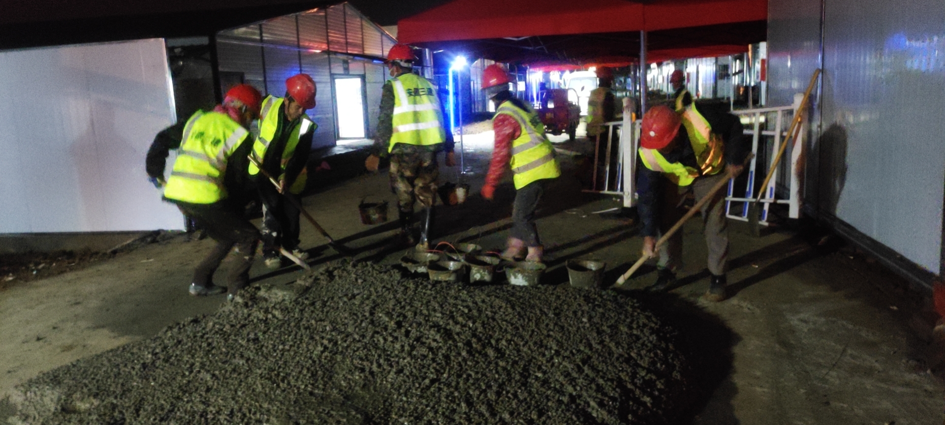 接到電話后,項(xiàng)目經(jīng)理立刻組織管理人員和現(xiàn)場(chǎng)班組,短短10分鐘內(nèi),有50名員工積極報(bào)名參與這個(gè)夜晚驛站建設(shè)的突擊任務(wù)。晚上8:00,各隊(duì)伍已列隊(duì)廬江縣健康驛站大門外集合完畢,與內(nèi)部工作人員簡(jiǎn)單交談后,得知現(xiàn)場(chǎng)主要困難是集水溝槽的無人砌筑,施工機(jī)械無法到達(dá)指定地點(diǎn)等,必須采用人工運(yùn)輸?shù)姆绞竭M(jìn)行材料運(yùn)輸。由于情況緊急,現(xiàn)場(chǎng)立即組織分工,經(jīng)過長(zhǎng)達(dá)幾個(gè)小時(shí)的奮戰(zhàn)之后,于凌晨1:20,廬江縣健康驛站24棟建筑長(zhǎng)達(dá)3萬米的排水明溝全部砌筑完成,順利結(jié)束了本次突擊任務(wù)。