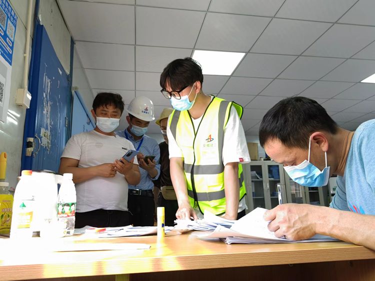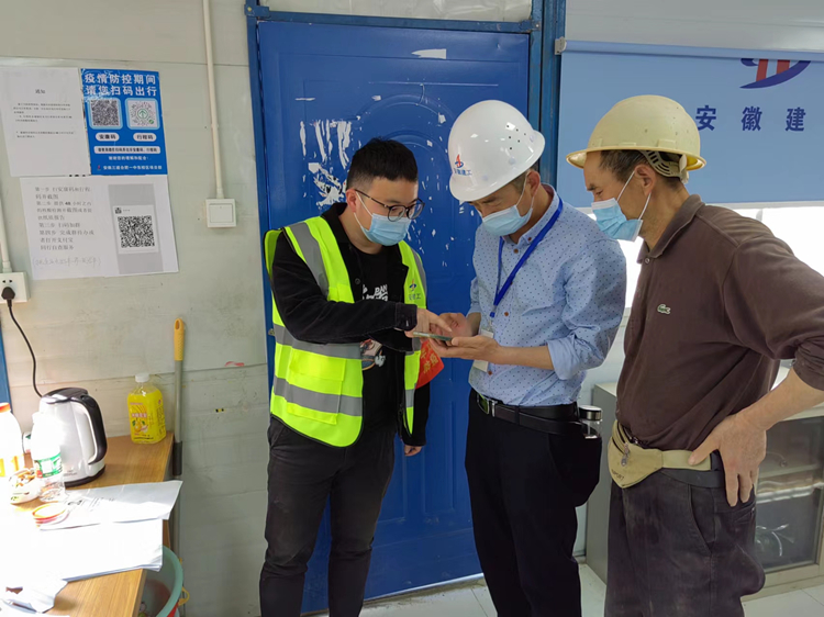 “請出示健康碼、行程碼以及48小時(shí)核酸檢測報(bào)告,配合測量體溫,進(jìn)場人員做好個(gè)人信息登記......”在合肥一中東校區(qū)項(xiàng)目的時(shí)誠、鐘凌昊兩位同志每天都要重復(fù)這句話數(shù)百次。合肥一中東校區(qū)項(xiàng)目的鐘凌昊從年后到現(xiàn)在已有兩個(gè)多月沒有回家,作為一名95后,他獨(dú)自在合肥打拼,其母親在去年不幸去世,今年因?yàn)橐咔橛绊懸矝]能清明節(jié)期間返鄉(xiāng)。每天早上5:00他就開始協(xié)助項(xiàng)目開展疫情防控工作,重點(diǎn)從大門處攔截掃碼或測溫異常人員。到了深夜,他又要前往項(xiàng)目生活區(qū)組織每日的例行檢查。為了響應(yīng)封閉管理的政策要求,每天的工作兩點(diǎn)一線,白天防控疫情,晚上整理資料。別人也勸他可以休息休息,他卻說:“疫情刻不容緩,使命呼喚擔(dān)當(dāng),對于現(xiàn)場兩千多工人來說,我們就是他們的第一道防線,所以我肯定要做好自己的本職工作。”同在一中東校區(qū)項(xiàng)目的時(shí)誠家就在附近,但是為了貫徹落實(shí)好防疫措施,他也毅然選擇堅(jiān)守在項(xiàng)目現(xiàn)場,已經(jīng)很久沒有睡過一個(gè)好覺了,但是為了做好防疫工作依然默默堅(jiān)持著。