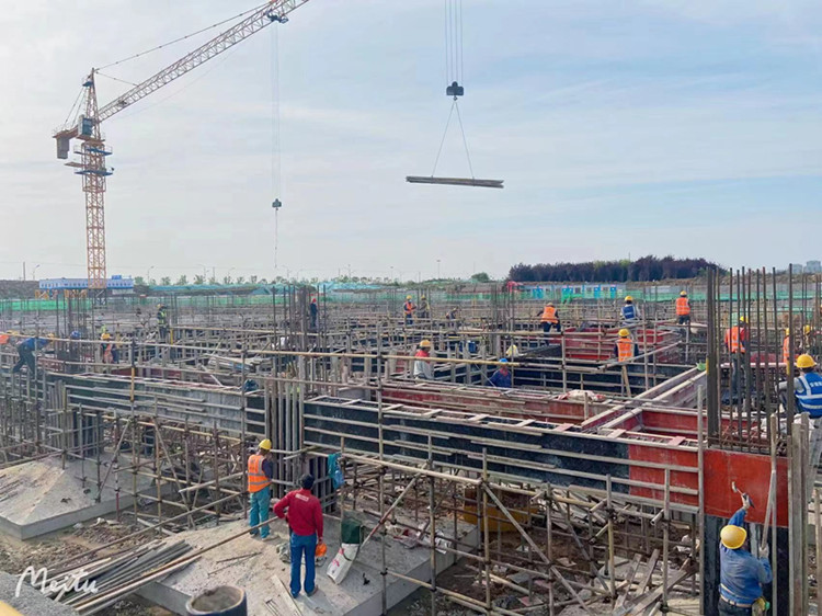 目光轉(zhuǎn)至文化中心檔案館項(xiàng)目,120多名現(xiàn)場(chǎng)人員正有序施工作業(yè),40名鋼筋工不停地穿梭在負(fù)一層,他們雙手并用,技術(shù)熟練,全面推進(jìn)滿堂架搭設(shè)與鋼筋綁扎工作;再看那45名木工,分別站在各施工點(diǎn)位,安裝、調(diào)整模板;瓦工、機(jī)械工、信號(hào)工每個(gè)操作工種都高效有序的完成他們心中的既定目標(biāo)。