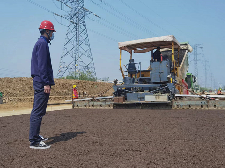 (舒王臺(tái)路項(xiàng)目水穩(wěn)攤鋪現(xiàn)場(chǎng))