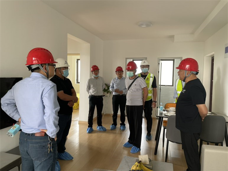 殷傳才一行來到肥東振興EPC項(xiàng)目施工現(xiàn)場,詳細(xì)聽取了項(xiàng)目負(fù)責(zé)人沈飛關(guān)于項(xiàng)目進(jìn)度情況、施工重難點(diǎn)、安全生產(chǎn)、疫情防控等方面的匯報(bào)。在參觀精裝修樣板間時(shí),殷傳才一行對項(xiàng)目的施工進(jìn)度和樣板間的選型給予了高度評價(jià)和充分肯定,并要求項(xiàng)目按照此標(biāo)準(zhǔn)保質(zhì)保量按時(shí)完成既定任務(wù),將項(xiàng)目打造成租賃住房的典范。過程中,殷傳才要求項(xiàng)目部要嚴(yán)格堅(jiān)持安全施工、規(guī)范施工、高效施工,強(qiáng)化責(zé)任意識,加強(qiáng)現(xiàn)場管理,進(jìn)一步提升項(xiàng)目管理規(guī)范化精細(xì)化水平,打造精品工程。