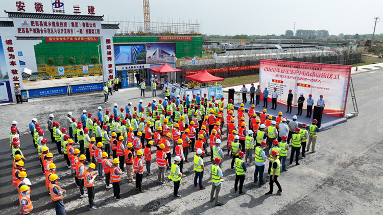 儀式結(jié)束后,肥西產(chǎn)融項目指揮部安全生產(chǎn)部負(fù)責(zé)人劉標(biāo)介紹,今年項目“安全生產(chǎn)月”活動以精益安全管理為抓手,將開展有聲勢有實效的安全宣傳、教育培訓(xùn)、隱患排查、問題整改、經(jīng)驗推廣、案例警示、知識普及等重點活動內(nèi)容,促進安全生產(chǎn)形勢持續(xù)穩(wěn)定向好,迎接黨的二十大勝利召開。