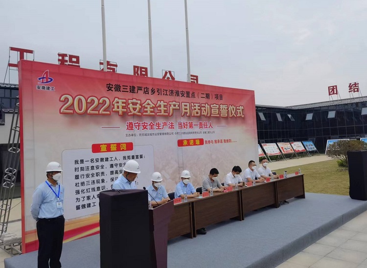九公司嚴(yán)店鄉(xiāng)引江濟(jì)淮安置點(diǎn)項目開展“安全生產(chǎn)月”啟動儀式及應(yīng)急救援演練