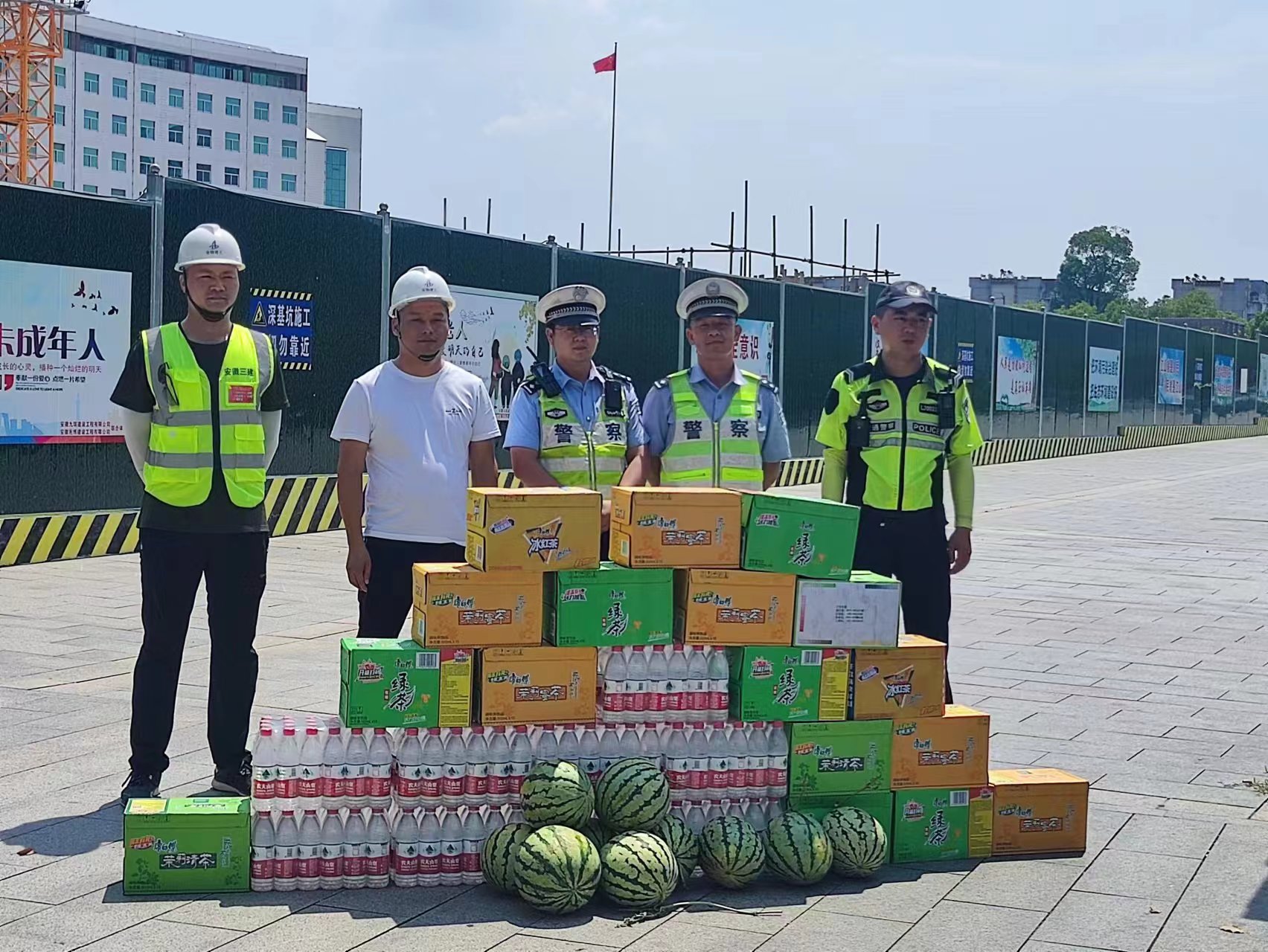 自開工以來,項(xiàng)目的順利推進(jìn)離不開廬江縣交警中隊(duì)的大力支持。為了表達(dá)對(duì)交警同志們的感激之情,項(xiàng)目部購買了送清涼物資2車,包括礦泉水、綠茶、西瓜等,讓堅(jiān)守在一線的交警們感受到“警民一家親”的溫馨。