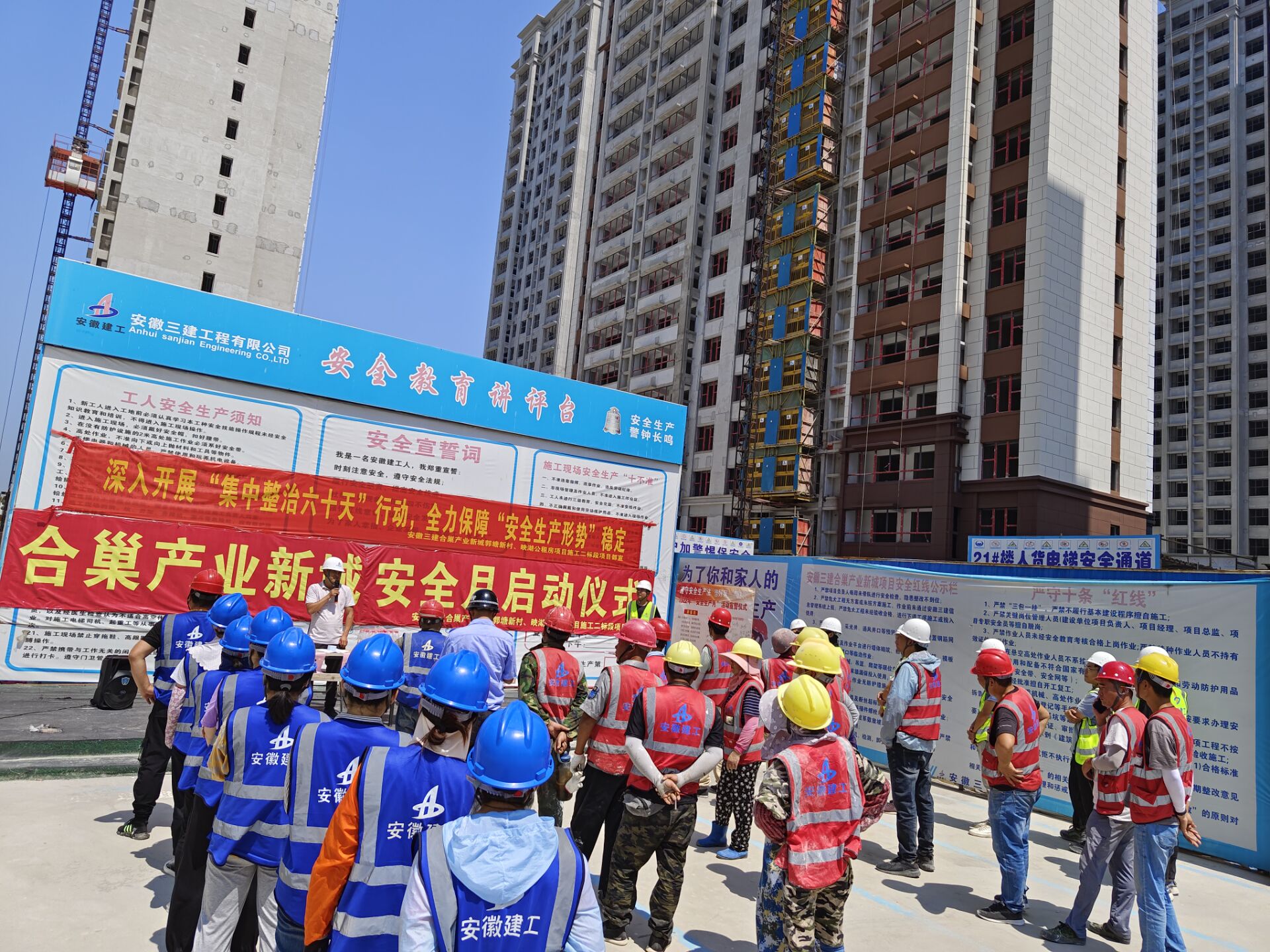 2022年6月是第21個安全生產(chǎn)月活動,圍繞“遵守安全生產(chǎn)法,當好第一責任人”主題,以6月16日全國“安全宣傳咨詢?nèi)铡睘槠鯔C,二公司合巢產(chǎn)業(yè)新城項目組織全體管理人員及施工現(xiàn)場一線工人在安全教育宣講臺處開展“6·16安全知識有獎競猜活動”,活動由分公司安全科長張立榮主持。