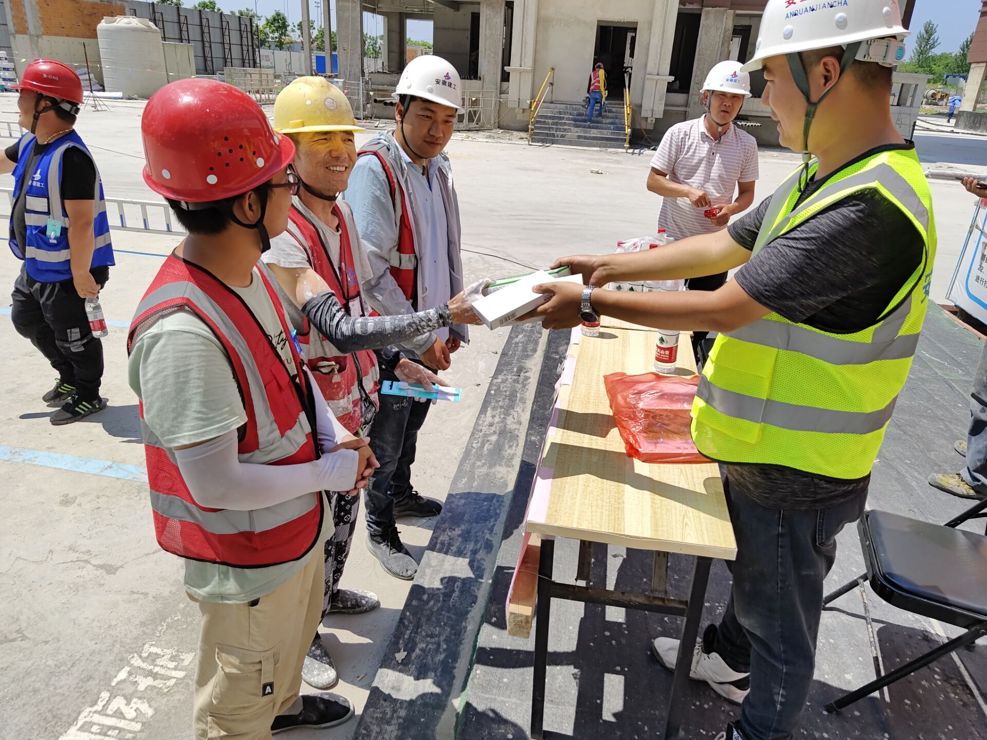 隨后,張科長及項目管理人員向一線工人發(fā)放防暑降溫藥品、物品,提醒工人避開高溫時段,安全作業(yè)。