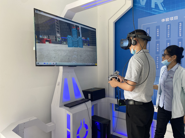 觀摩團(tuán)隨后來到了產(chǎn)城融合示范區(qū)智慧展廳,五公司副經(jīng)理范太忠就現(xiàn)場沙盤給觀摩團(tuán)詳細(xì)介紹了產(chǎn)城融合示范區(qū)一期、二期所有項(xiàng)目的具體情況。智慧展廳的各種體驗(yàn)項(xiàng)目也引起了觀摩團(tuán)的高度關(guān)注,尤其是vr體驗(yàn)區(qū),他們在現(xiàn)場管理人員的幫助下利用vr技術(shù)模擬體驗(yàn)了坍方、高墜等事故的過程,對施工現(xiàn)場存在的安全事故隱患有了更深一步的了解。