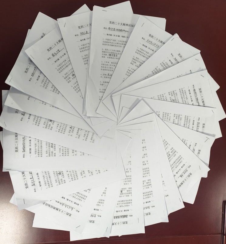 此次測試內(nèi)容緊緊圍繞黨的二十大報告及新修訂的《中國共產(chǎn)黨章程》,題型包括填空題、選擇題、判斷題、簡答題等形式,著重測試黨員及職工群眾對黨的二十大會議精神的掌握情況。測試現(xiàn)場,大家仔細(xì)審題,認(rèn)真答卷,展現(xiàn)出良好的學(xué)習(xí)作風(fēng)與端正的考試態(tài)度 ,營造了“以考促學(xué)、以學(xué)促用”的濃厚氛圍。