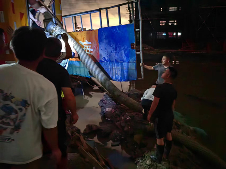 為盡快恢復(fù)生產(chǎn),項目經(jīng)理汪義善同志第一時間到達(dá)現(xiàn)場,立即組織管理人員,找來潛水泵、排水管、編織袋、鐵鍬等排水工具,進(jìn)行搶險自救。在這場搶險的過程中,黨員、干部身先士卒帶頭搶險,每一名管理人員也都是好樣的,他們24小時輪流值班,有的管理人員衣服濕透,手腳被雨水泡腫,身體多處擦傷等,但他們都顧不上這些,為確保積水迅速排掉,仍然堅持戰(zhàn)斗,彰顯了安徽三建人吃苦耐勞的精神。經(jīng)過連續(xù)多天日夜奮戰(zhàn),該項目積水已經(jīng)減少很多,施工現(xiàn)場設(shè)備和材料目前沒有造成實際損失。
