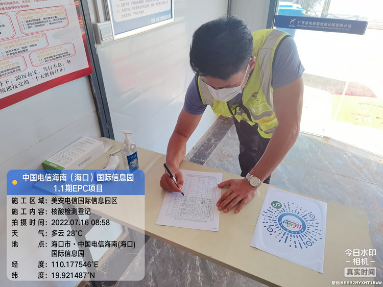 一公司中國(guó)電信海南(??冢﹪?guó)際信息園1.1期EPC項(xiàng)目開展核酸檢測(cè)