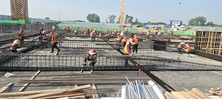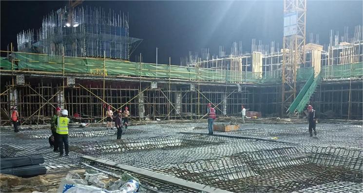 入夏以來,合肥市持續(xù)高溫給現(xiàn)場施工增添了很大難度,在保障現(xiàn)場施工不停滯的同時做好工人的身體健康管理,項目立即調(diào)整現(xiàn)場作業(yè)時間,“休中間,戰(zhàn)兩邊”。晨光熹微,工人同志已經(jīng)熱火朝天地進(jìn)行現(xiàn)場建設(shè);晚霞滿天,工人同志又開始晚間時段的搶工建設(shè)。為確保八地塊1#樓人防底板鋼筋順利通過驗收,棟號長組織班組每天施工到深夜,為勞務(wù)工人提供水和泡面,人性化的服務(wù)充分調(diào)動工人的積極性,最終,人防驗收按時完成,順利通過驗收,施工質(zhì)量還得到了人防站的認(rèn)可。