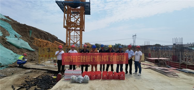 8月3日,驕陽似火,熱風(fēng)撲面,建機(jī)公司黨總支書記李朝進(jìn)一行赴長(zhǎng)豐縣吳山鎮(zhèn)第二工業(yè)社區(qū)項(xiàng)目部開展“送清涼”慰問活動(dòng),為項(xiàng)目部一線職工發(fā)放毛巾、香皂、人丹、清涼油、風(fēng)油精、飲料、礦泉水等防暑降溫物資。分公司有關(guān)部門負(fù)責(zé)人參加慰問活動(dòng)。