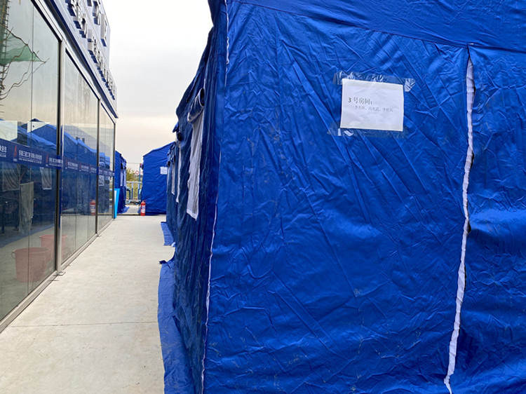 期間,項(xiàng)目加強(qiáng)對(duì)務(wù)工人員的日常疫情管控,嚴(yán)格落實(shí)核酸檢測(cè)、健康管理、制定應(yīng)急預(yù)案等防疫措施。為保證項(xiàng)目安全生產(chǎn),在辦公區(qū)附近搭設(shè)10余個(gè)帳篷,為一線班組提供臨時(shí)住所,并為其解決就餐、洗漱等問(wèn)題。既不耽誤一線班組因防疫而造成務(wù)工困難,又為項(xiàng)目安全生產(chǎn)提供了強(qiáng)有力的生活保障,在班組中好評(píng)不斷。