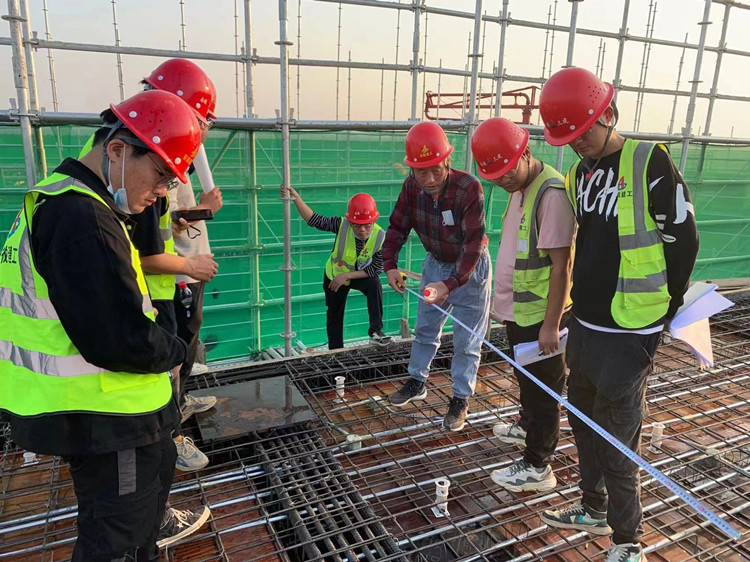 本次培訓由五公司技術質量科帶隊各在建項目技術負責、技術員共計12人來到肥西產城融合示范區(qū)文化中心項目的圖書館鋼筋工作面,就施工現場鋼筋自行檢查,對照圖紙、規(guī)范等找出不懂的地方,現場形成問題清單。盧金兵進入施工現場,帶領在場的人員進行了詳細的檢查,并一一解答了每個同事提出的各種問題,以檢查為教學、以現場為案例。