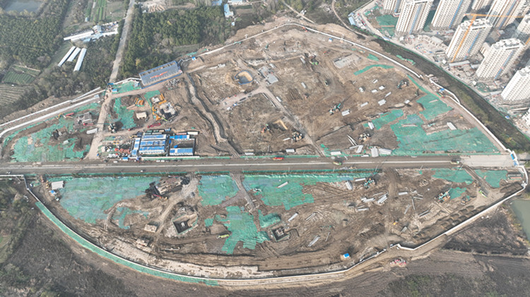 生產(chǎn)方面,現(xiàn)場科學(xué)謀劃,因現(xiàn)狀道路蘭渡路位于項目紅線內(nèi),將項目用地分為南北兩塊區(qū)域,137路公交車通行路線仍途經(jīng)蘭渡路,對項目整體進度造成了極大影響。項目召開專題研討會,決定兵分兩路,一方面積極與大建辦、交管部門、公交集團協(xié)調(diào)溝通,盡快完成蘭渡路道改封閉事宜;另一方面,考慮施工現(xiàn)場不具備大面施工條件,項目謀劃永臨結(jié)合作業(yè),充分利用現(xiàn)有場地條件,將室外永久圍墻及室外永久道路提前謀劃施工,在前期取得了顯著成效。在關(guān)鎮(zhèn)村155畝場地移交后,項目整體具備大面施工條件,在一天之內(nèi)完成關(guān)鎮(zhèn)區(qū)域所有清表工作。