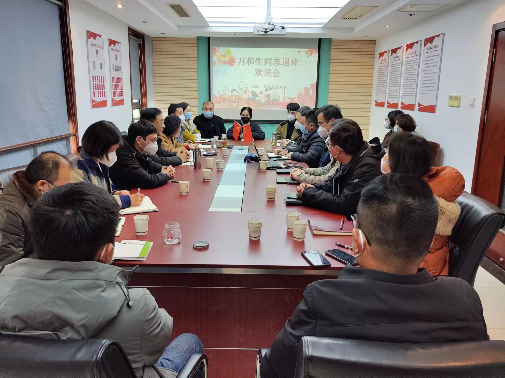 裝飾公司黨支部書記高莉主持會議,首先由高莉書記致歡送詞,對萬和生同志任職裝飾公司經(jīng)理多年默默奉獻(xiàn),任勞任怨的精神表示充分肯定,并號召年輕職工傳承老員工的敬業(yè)精神。祝愿萬和生同志退休后能好好享受輕松愉悅的生活。高書記還為萬和生同志獻(xiàn)上鮮花,并附送上退休祝福賀卡。