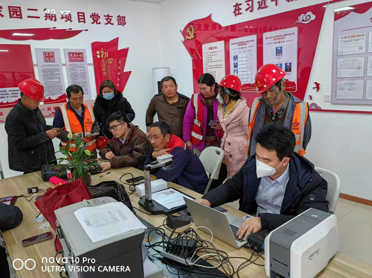 為保障新進(jìn)場(chǎng)農(nóng)民工工資年前正常發(fā)放,日前,八公司大圩金葡萄二期項(xiàng)目部專門聯(lián)系銀行業(yè)務(wù)人員來到項(xiàng)目部現(xiàn)場(chǎng)為農(nóng)民工集體辦理銀行卡。