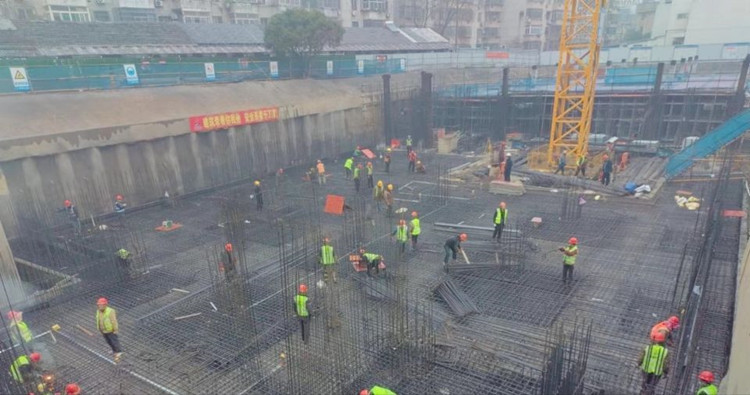 自2022年9月項(xiàng)目正式開(kāi)工以來(lái),項(xiàng)目克服了疫情封控、揚(yáng)塵管控、土方外運(yùn)難、地下管線拆改、施工及交通環(huán)境復(fù)雜等一些列施工難題,緊鑼密鼓開(kāi)展生產(chǎn)。2023年初,項(xiàng)目接到業(yè)主單位下達(dá)春節(jié)前停車樓筏板基礎(chǔ)完成的節(jié)點(diǎn)目標(biāo),項(xiàng)目部第一時(shí)間部署搶工工作,面對(duì)復(fù)雜的勁性混凝土人防工程,項(xiàng)目部管理人員與各班組勞務(wù)人員展開(kāi)為期十天的勞動(dòng)沖刺,采用日夜兩班倒、停人不停機(jī)搶工模式,終于在15日凌晨完成停車樓筏板最后一方混凝土澆筑,耗時(shí)11個(gè)小時(shí),順利完成年前施工任務(wù)。