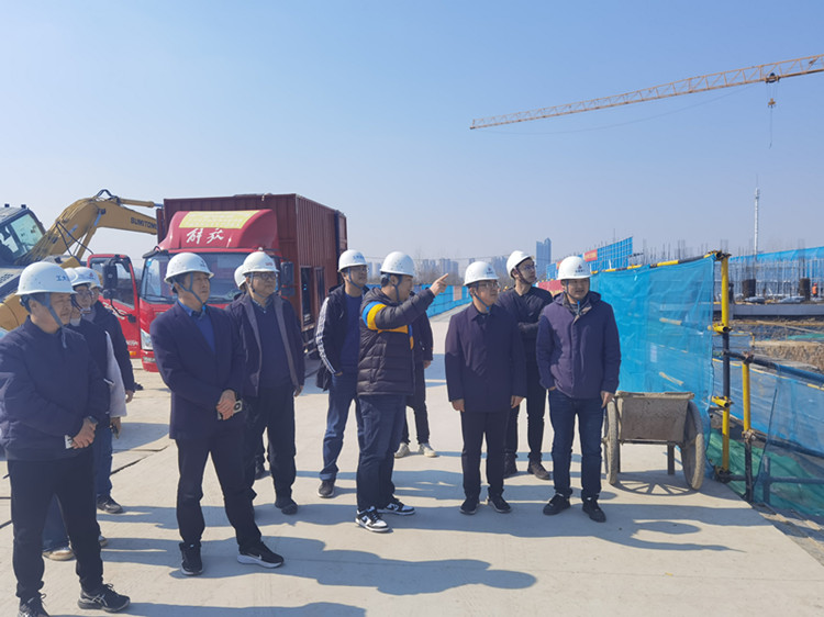 調(diào)研中,陸昌云一行實地查看了項目北校門樣板引路工程、材料樣板展示區(qū)、智慧中心體驗區(qū)、各單體施工進度及現(xiàn)場安全文明情況,通過聽介紹、看現(xiàn)場的形式,詳細了解了項目各項工作開展情況,并對項目謀劃在先、行動在前,各項工作有序推進給予充分肯定。陸昌云指出,合肥一中淝河校區(qū)作為合肥市教育局一號重點工程,工期緊、任務重、要求高,項目部要圍繞創(chuàng)杯創(chuàng)優(yōu)開展各項工作,牢固樹立安全意識、質(zhì)量意識,充分發(fā)揮安徽三建省內(nèi)建筑龍頭企業(yè)優(yōu)良作風,持之以恒做好精細化管理工作,力爭打造傳世工程。
