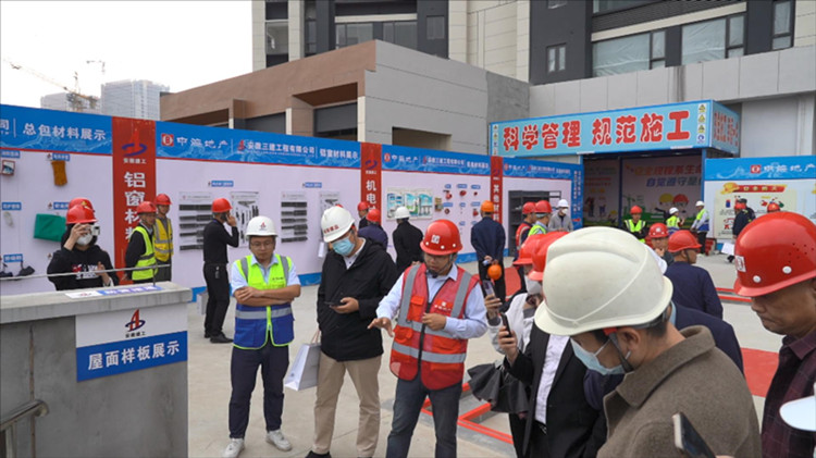 在現(xiàn)場(chǎng)觀摩會(huì)上,工地觀摩的講解員為大家介紹了項(xiàng)目堅(jiān)持樣板先行原則,建設(shè)智慧工地等提高工程質(zhì)量、保障安全施工的經(jīng)驗(yàn),并就項(xiàng)目室外安全文明檢驗(yàn)區(qū)、施工相關(guān)工藝、材料樣板、室內(nèi)土建精裝工藝和交付板房等方面的優(yōu)秀做法進(jìn)行了溝通交流。