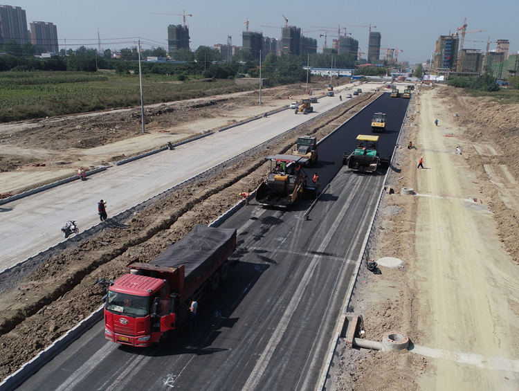 市政公司國(guó)慶期間項(xiàng)目生產(chǎn)現(xiàn)場(chǎng)依然火熱,阜陽(yáng)北京西路項(xiàng)目、山東省菏澤市長(zhǎng)沙路項(xiàng)目、利辛縣長(zhǎng)春東路等項(xiàng)目雨水管道安裝、檢查井砌筑、石方段開(kāi)挖、瀝青攤鋪、碎石墊層施工如火如荼。圖為利辛縣長(zhǎng)春東路項(xiàng)目瀝青攤鋪施工中。