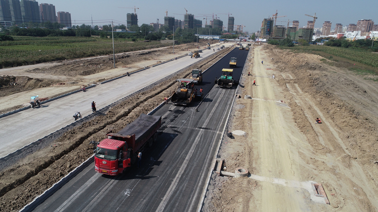 為了確保長春東路項目主體結(jié)構(gòu)工程國慶期間全線貫通,十一國慶節(jié)期間,市政公司分管領(lǐng)導現(xiàn)場帶班,項目部全體人員加班加點,按照計劃安排,增調(diào)機械設備,調(diào)整施工力量,全力以赴保障道路路面、橋梁等施工建設穩(wěn)步向前推進。國慶節(jié)期間已完成K0+070~K1+200段兩層瀝青面層的攤鋪工作,全線已完成接近90%的主車道水穩(wěn)三層基層攤鋪工作,輔車道也在穩(wěn)步施工中。