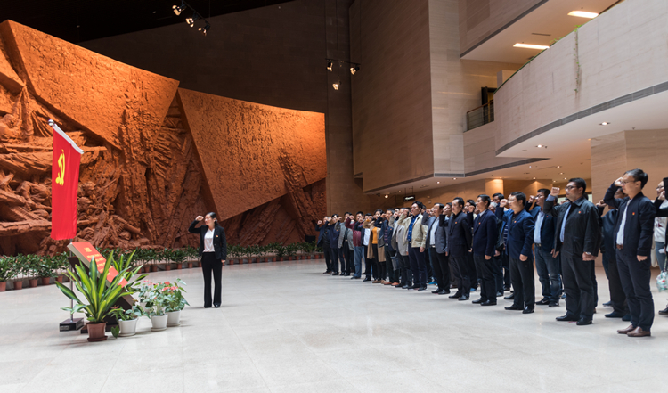 與會(huì)黨員在渡江戰(zhàn)役紀(jì)念館重溫入黨誓詞