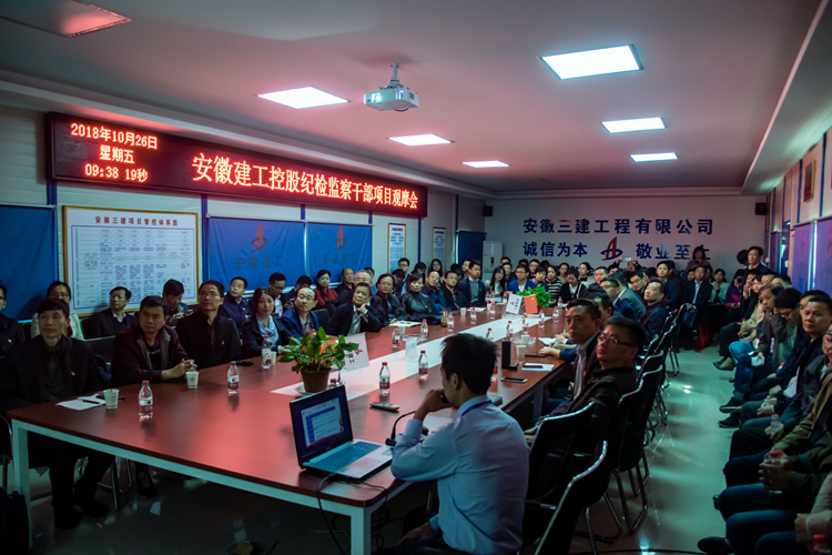 2018年10月26日上午,集團公司紀(jì)委書記宋志華率集團各子、分公司紀(jì)檢監(jiān)察干部培訓(xùn)班成員100余人到安徽三建八公司承建的市青少年綜合實踐基地項目,觀摩調(diào)研項目黨建和廉潔建設(shè)。