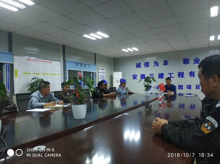 圖為山東棗莊融創(chuàng)御園項目利用晚間時間對塔吊信號工,電工,門衛(wèi)安全人員進行技術交底