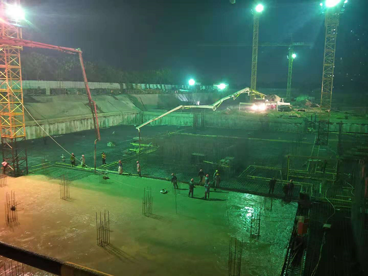 為全面保障項目搶工順利實施,項目部采取優(yōu)選班組、優(yōu)化施工組織、優(yōu)化工作面等多方面措施。為了保障夜間施工順利進(jìn)行,項目部實施夜間值班制度并多次協(xié)調(diào)環(huán)保部門,在保障不擾民的情況下日夜施工。就這樣,項目部白天安排扎鋼筋,支模版,晚上澆筑砼,24小時交叉作業(yè)。