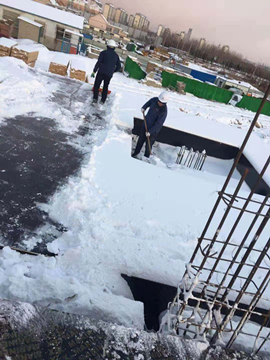 截至12月7日,煙臺市持續(xù)降雪一天一夜,安徽三建大連公司承建的煙臺力高二三四期項目現(xiàn)場覆蓋上了厚厚的積雪,臨建區(qū)域的積雪足足達到15厘米,為了保證施工生產安全,項目人員冒著零下四度的嚴寒,頂著飛舞的雪花,拿著鐵鏟和掃帚等清掃工具清除項目積雪。他們分工協(xié)作,有的鏟雪,有的清掃,有的堆碼。大家的臉和手雖然被凍得通紅,但是臉上都洋溢著勞動的喜悅。經過幾個小時的團隊作戰(zhàn),院內的積雪全面清除,確保了辦公安全。