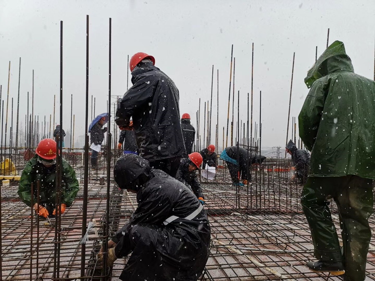 12日8日上午,地處浙江杭州灣之濱的余姚市迎來了今冬的第一場雪。刺骨的寒風夾帶著雪花紛紛揚揚飄在安徽三建余姚項目的工地上。為了按期完成搶工任務,工人們和項目管理人穿雨衣,冒雪奮戰(zhàn)操作面上,熱火朝天的大干,風雪阻擋不住三建大干的決心。