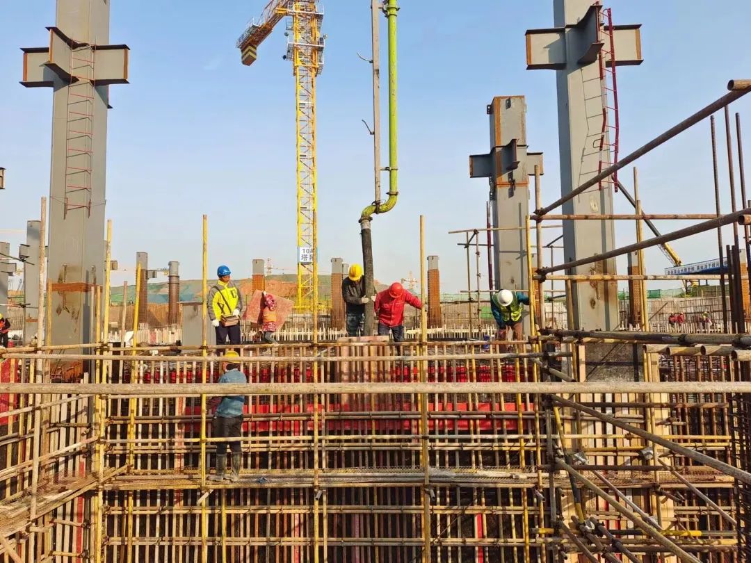 1月27日下午14時,七公司安徽大學(xué)江淮學(xué)院新校區(qū)項目體育館迎來了復(fù)工后的第一泵混凝土澆筑,13名瓦工、3名管理人員在生產(chǎn)一線吹響了江淮學(xué)院項目復(fù)工的“集結(jié)號”。