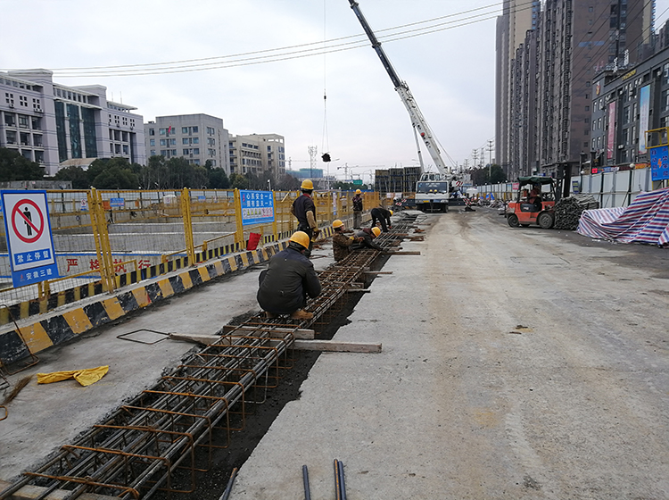 大強龍門吊基礎(chǔ)軌道鋼梁綁扎
